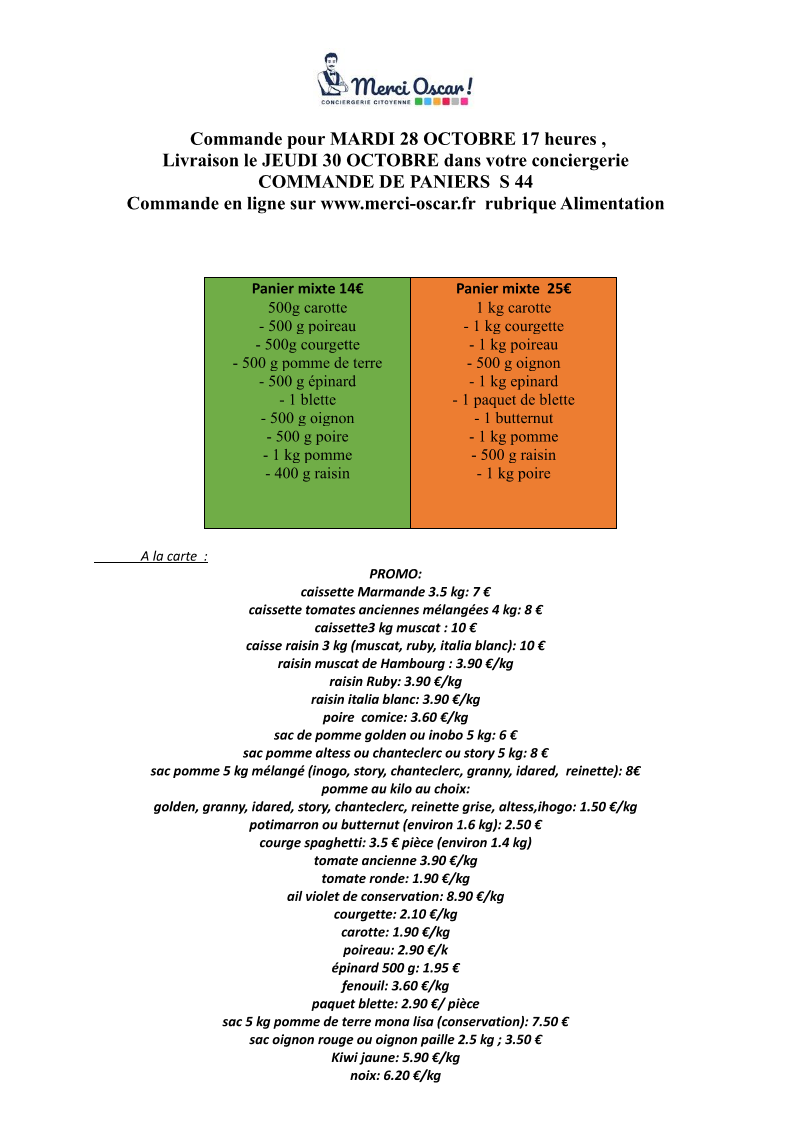 Aucun article défini dans la catégorie "Alimentation / Paniers de légumes avec le producteur "Au fil des saveurs"".