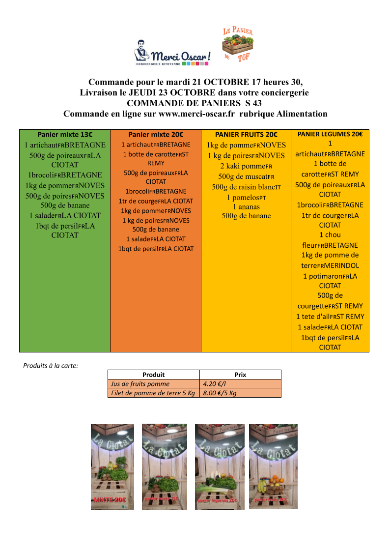 Commandez Votre Panier Paysan le mardi 17h30, livraison sur votre conciergerie le jeudi.
