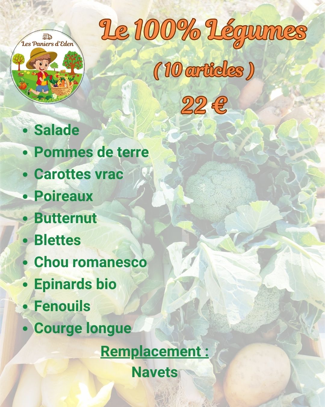 - Le 100% Légumes à 22€ : composé de 10 articles